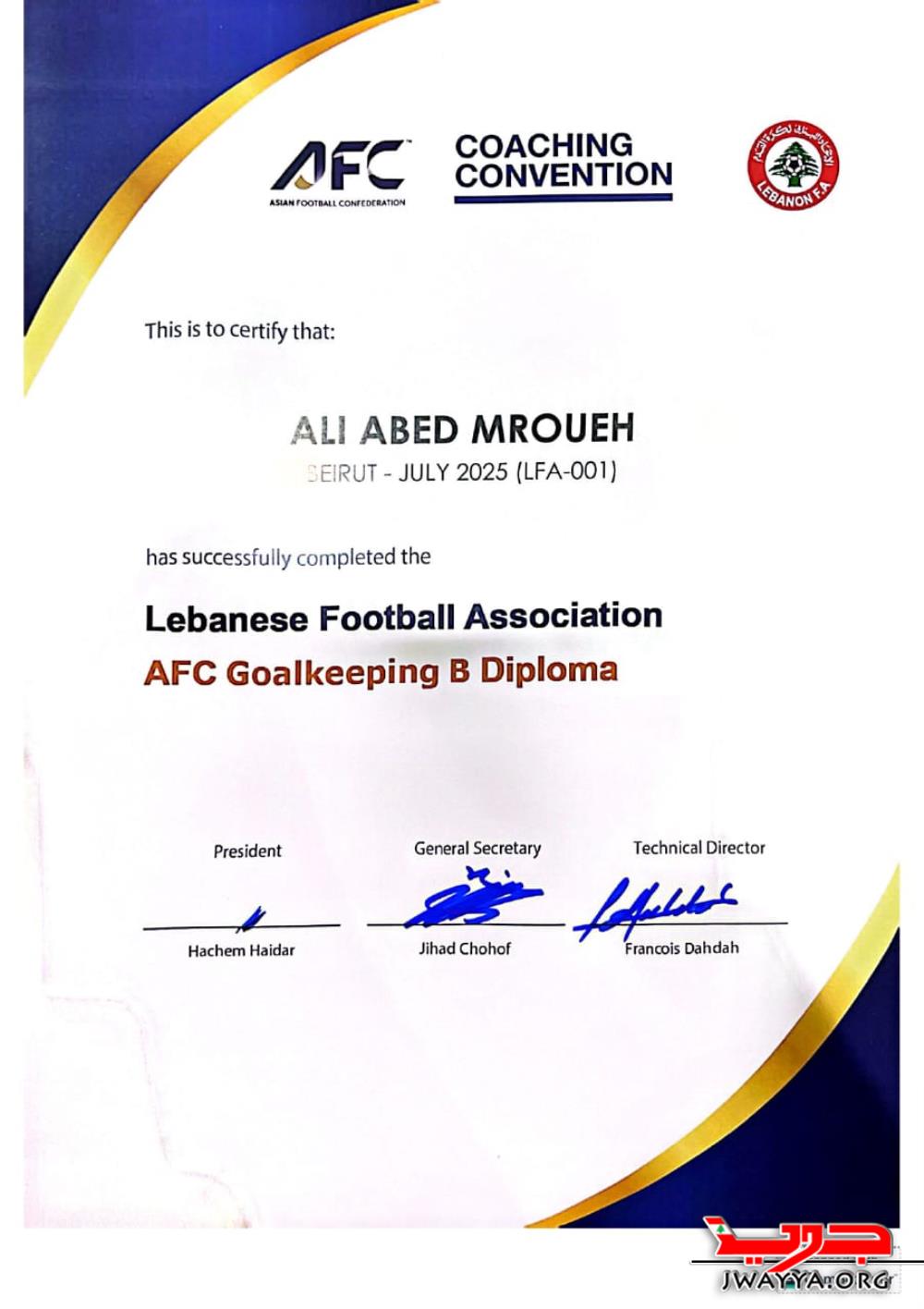 جويّا تُشرق وتزهو: ابن البلدة الكابتن علي مروة يحصد شهادة التدريب الآسيوية المرموقة.. إنجازٌ يسطّر بالذهب!